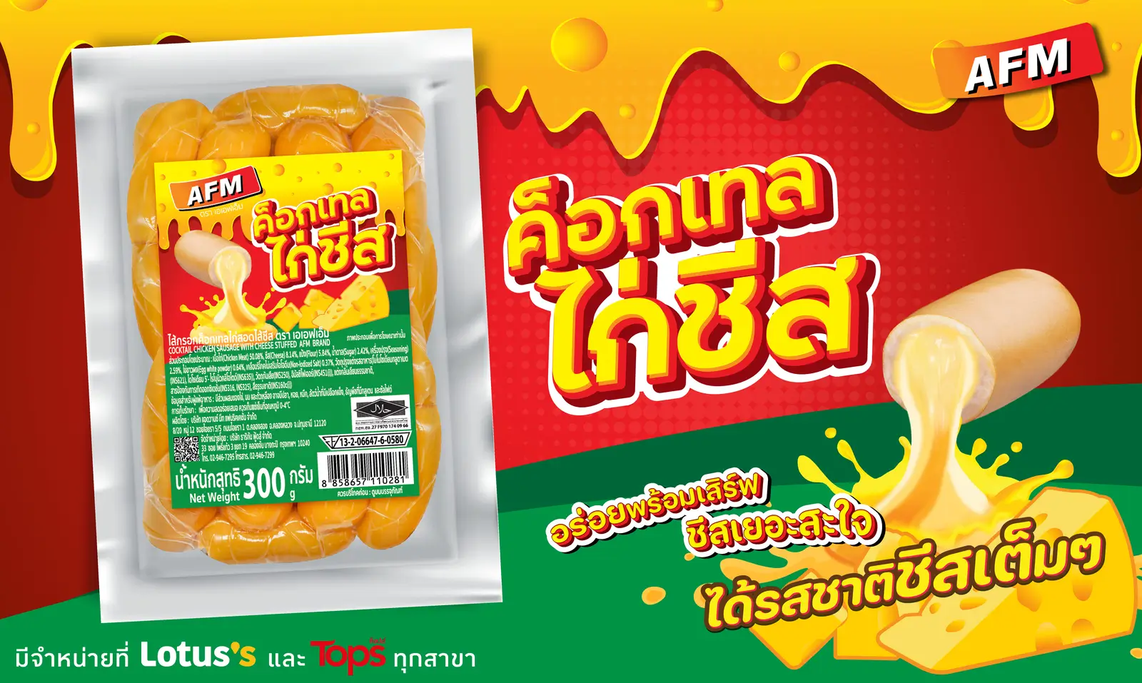 AFM ไส้กรอกไก่หนังกรอบสอดไส้ชีส “แถมฟรี 2 ชิ้น!”